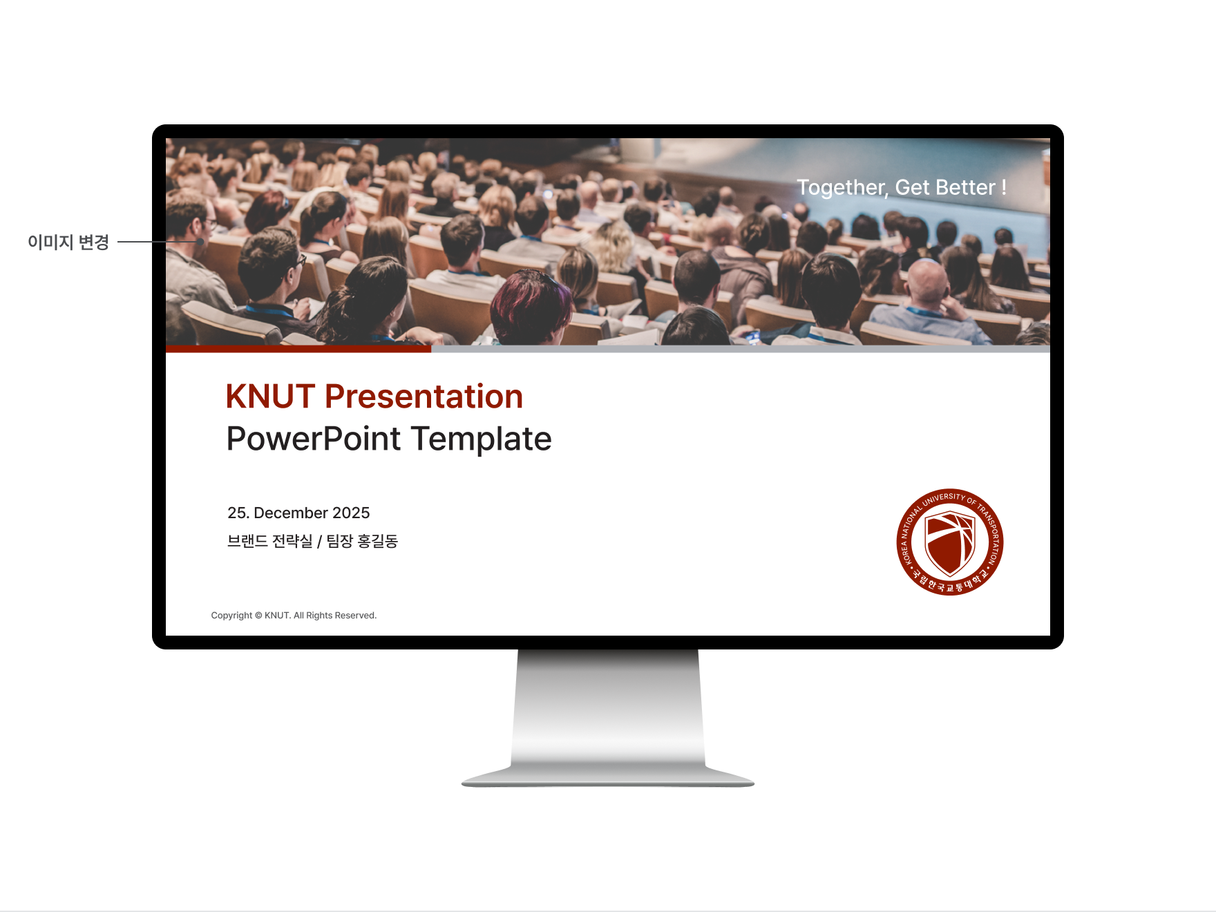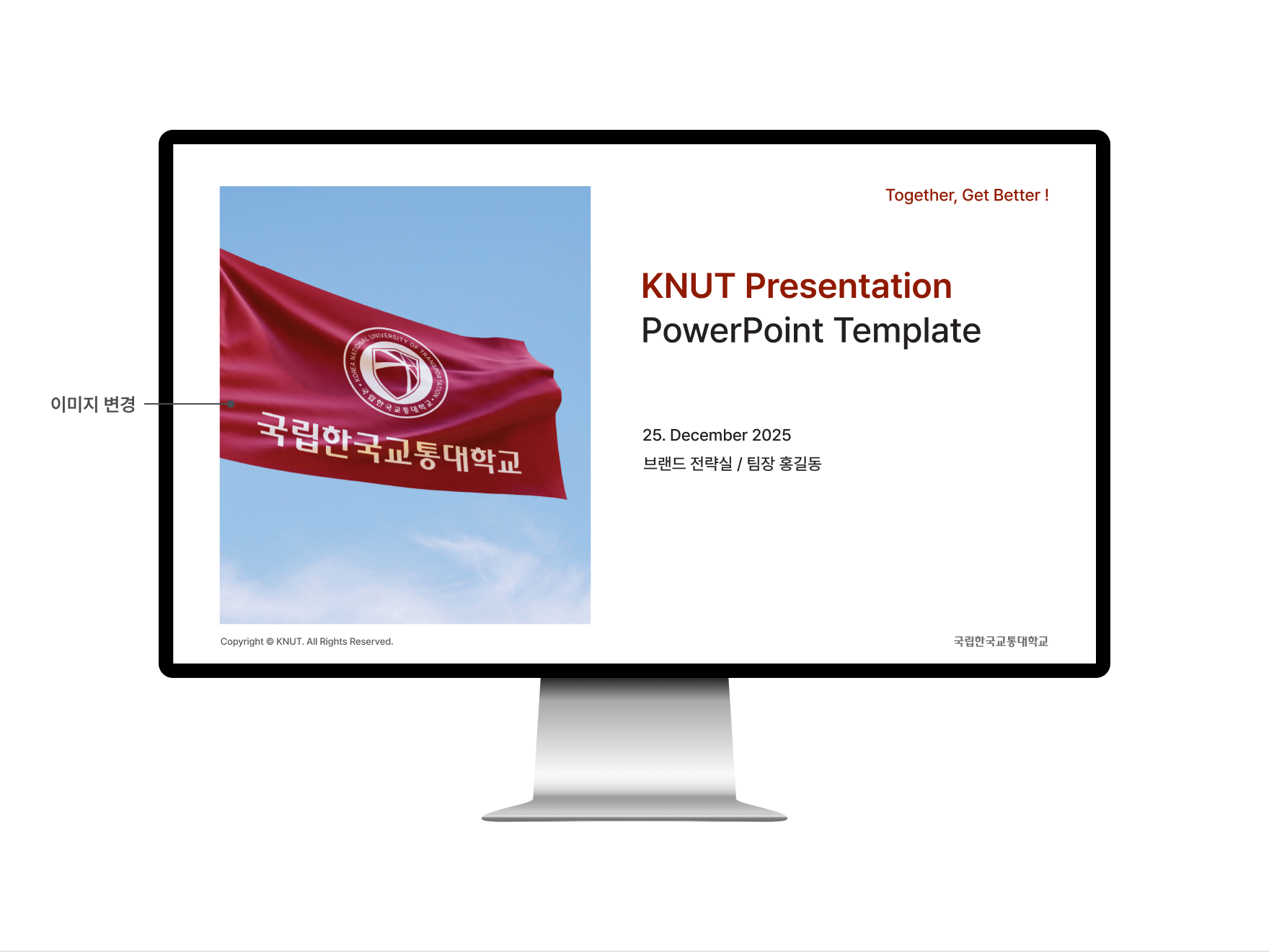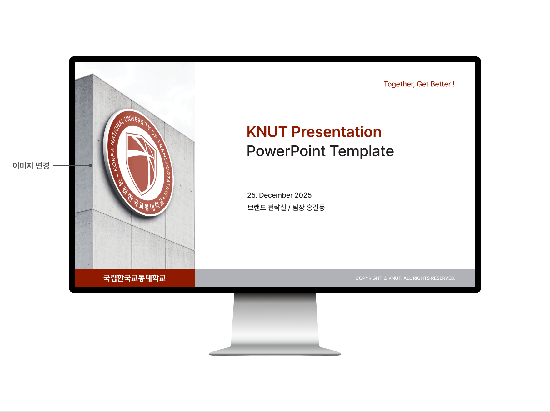 PPT 템플릿은 국립한국교통대학교 UI를 반영하여 정돈된 레이아웃과 공식 색상을 기반으로 구성되어 있습니다.